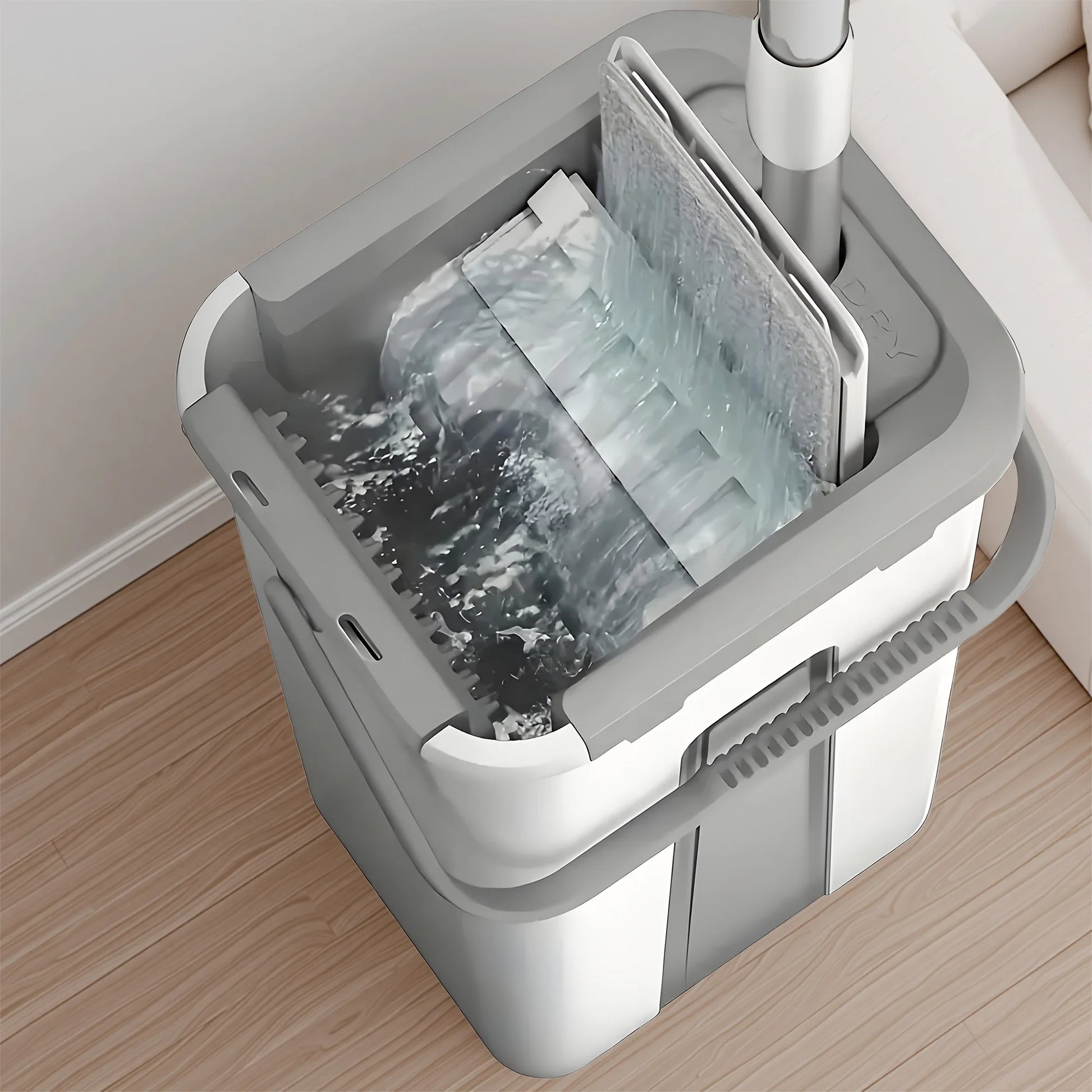 - Two-bucket efficiency with hands-free wringing: wash and wring separately, with a wash chamber to lift dirt and a dry chamber delivering 50–60% dehydration for minimal drips.