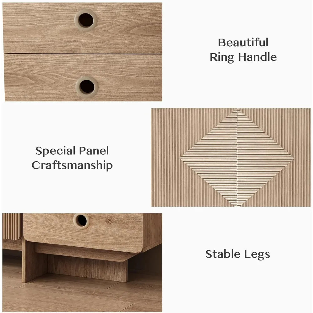 Fluted TV Stand Boho Modern Entertainment Center With Storage