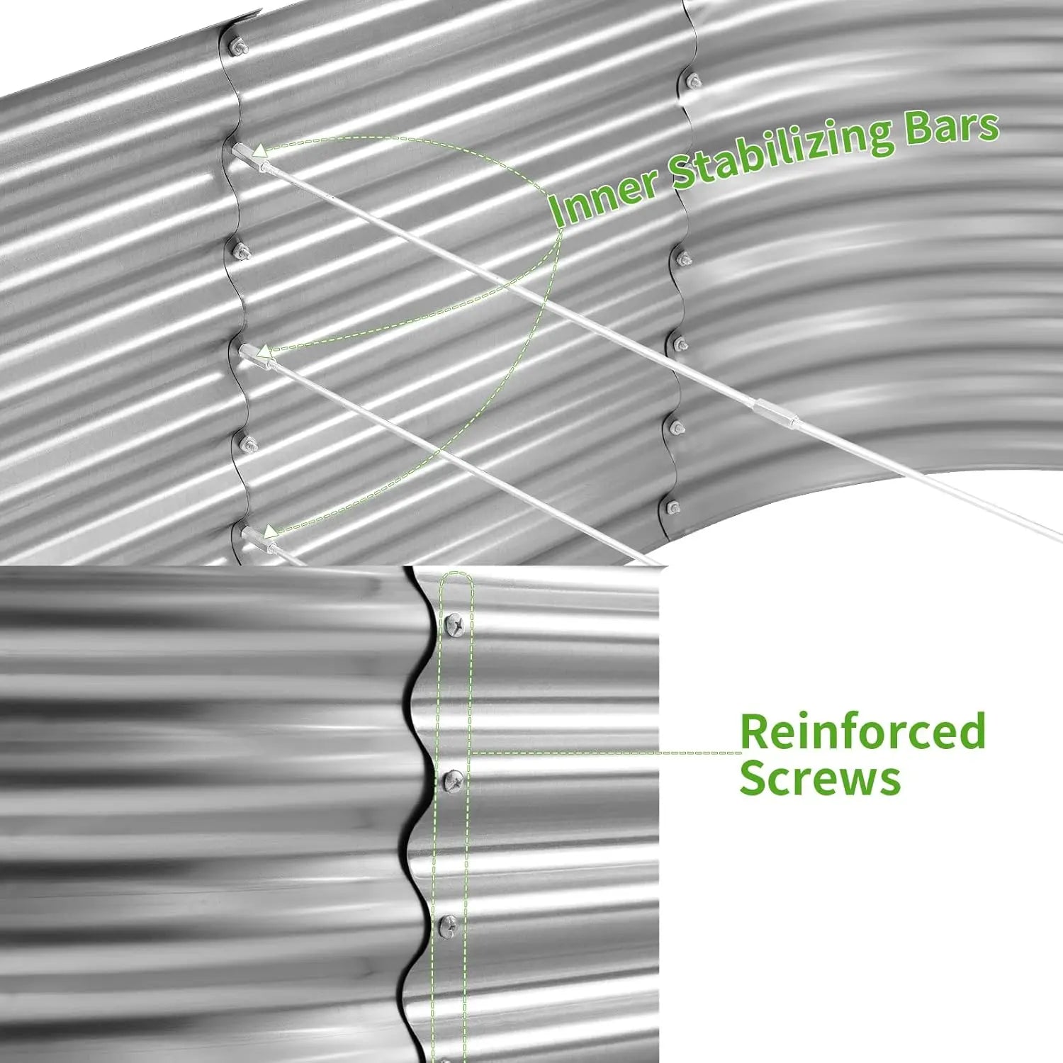 Oval Galvanized Raised Garden Bed Planter Box for Outdoor Vegetables