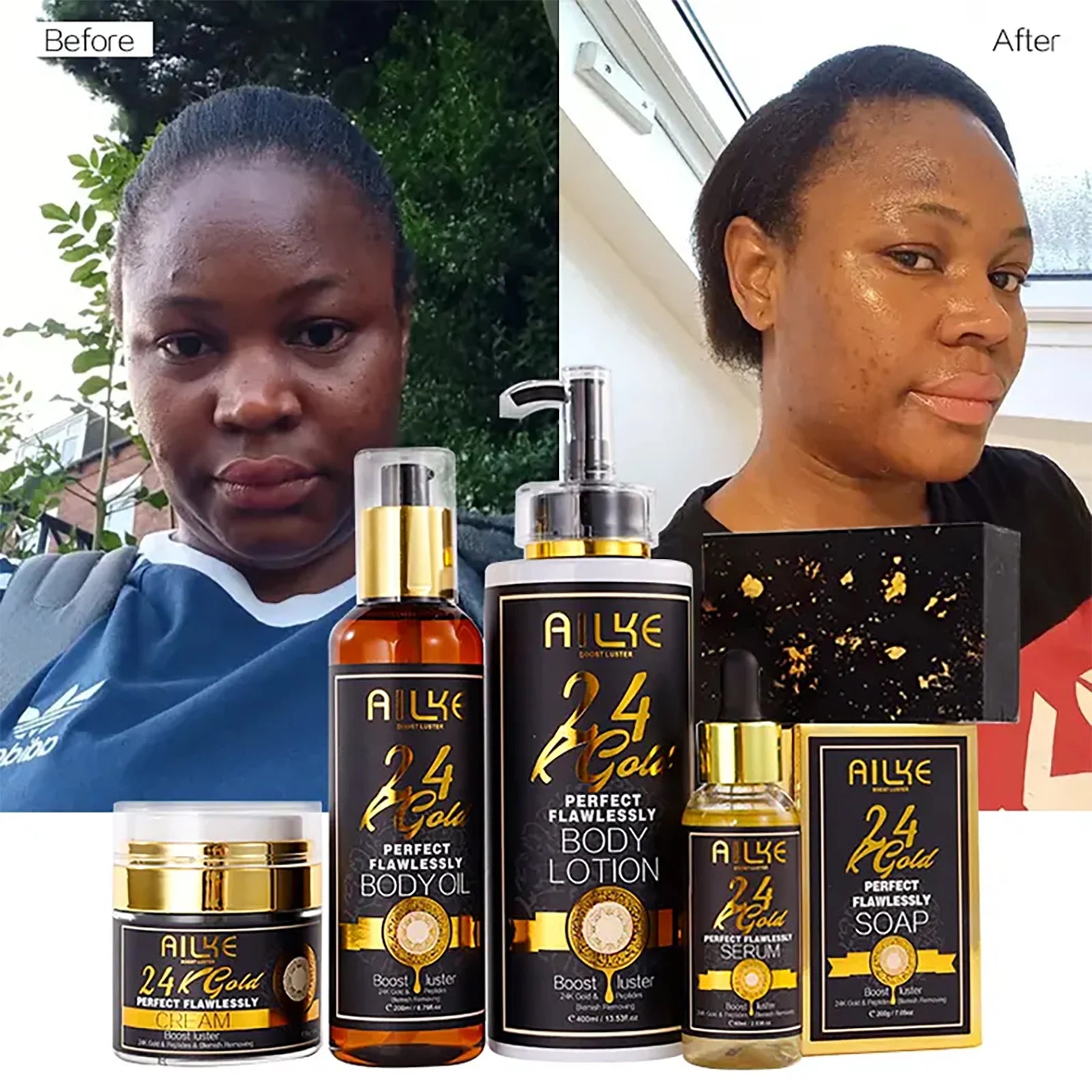 You can reveal radiant, even-toned skin with the AILKE 24K Gold Perfect Flawlessly Skin Care Set, designed for all skin types.