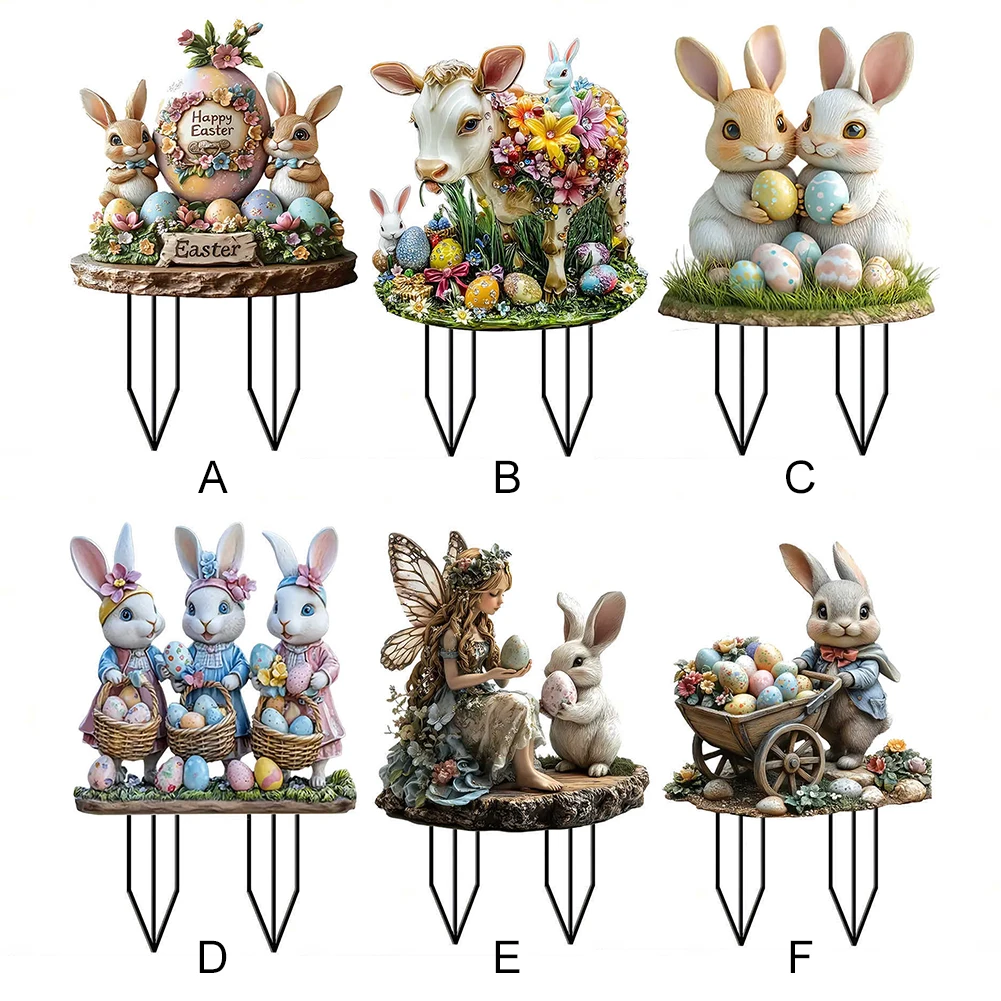 Shunmaii Easter Bunny Garden Stake Acrylic 2D Rabbit Sign