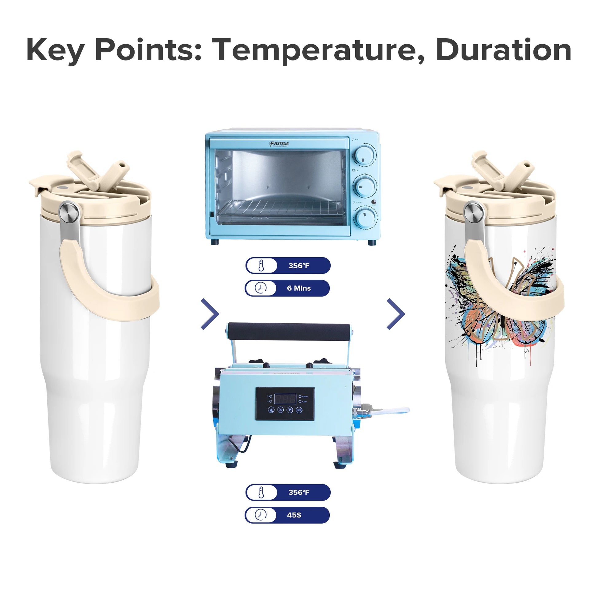 - With a 30 oz capacity, you have ample room for your favorite beverages and it works with standard tumbler press machines for easy customization.